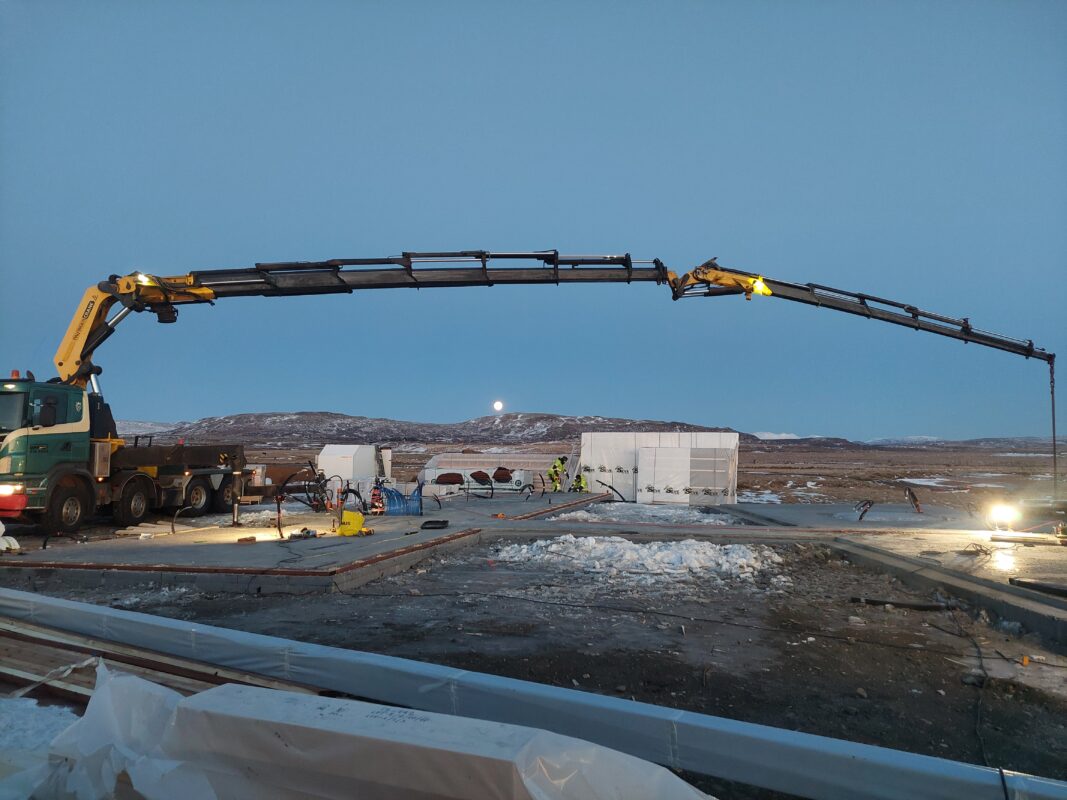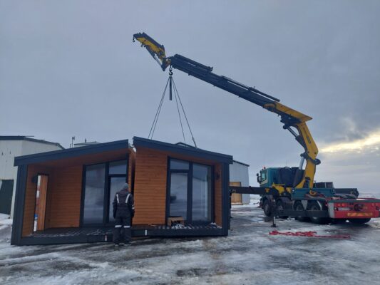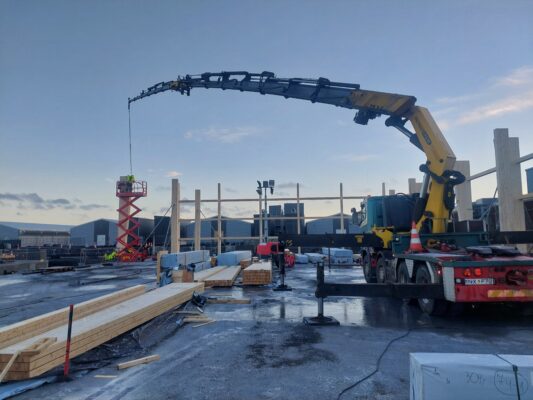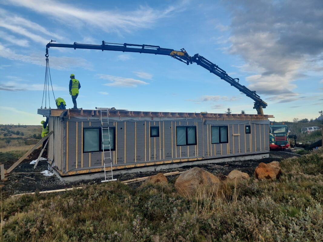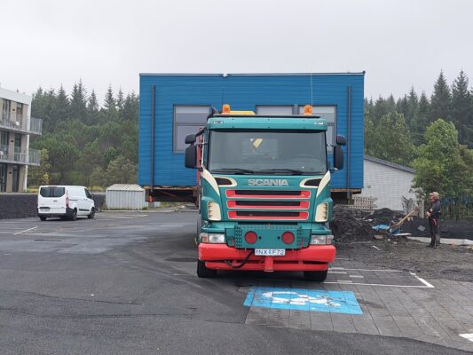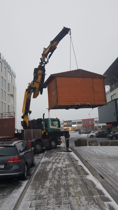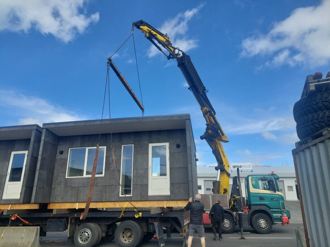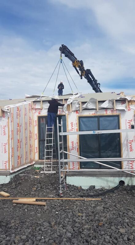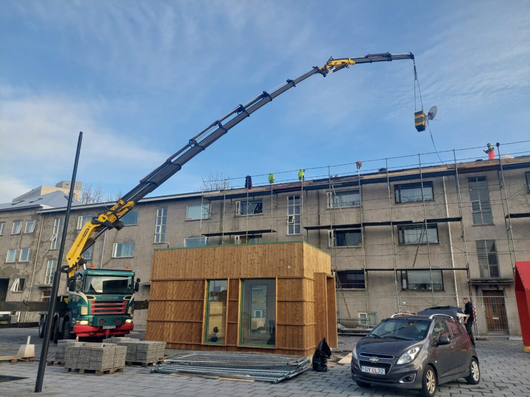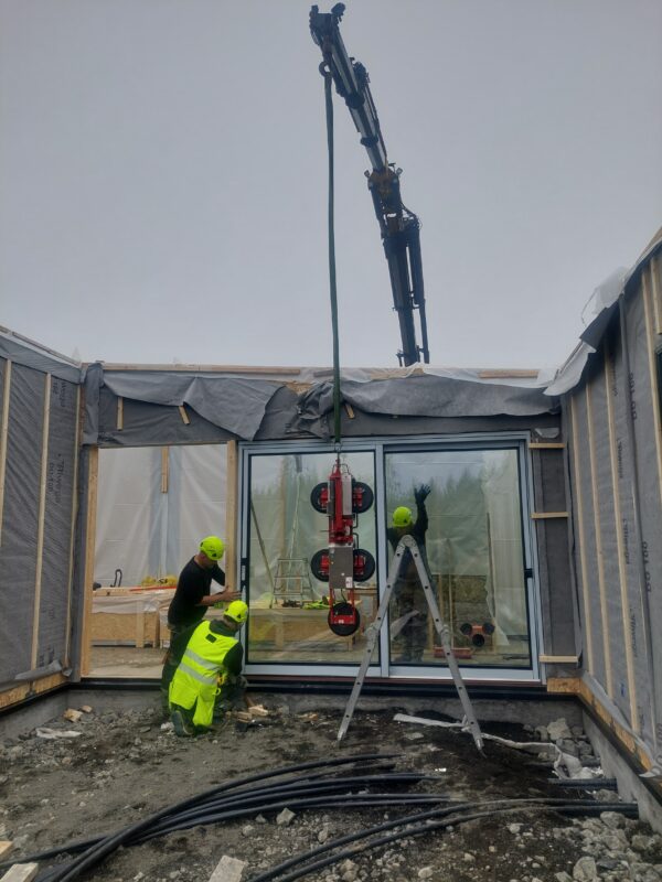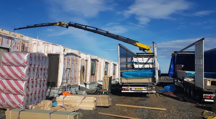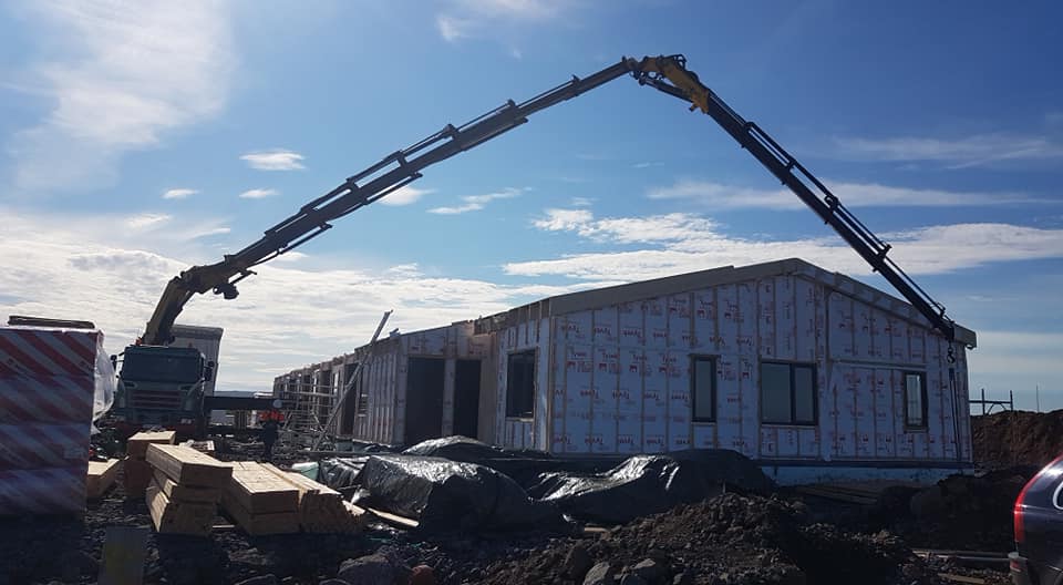 Hérna erum við að setja upp raðhús, sumarhús og límtrésskemmur.