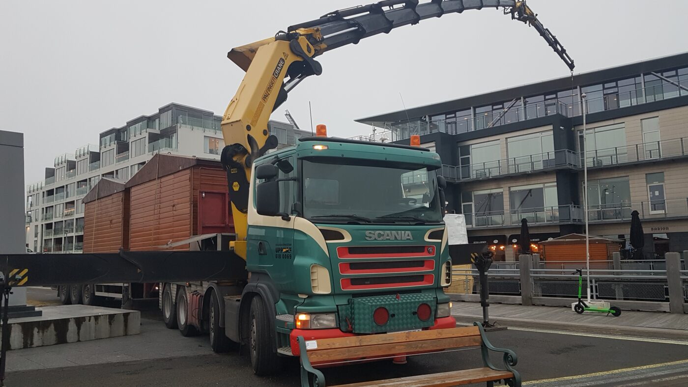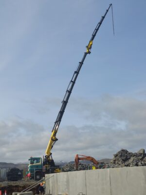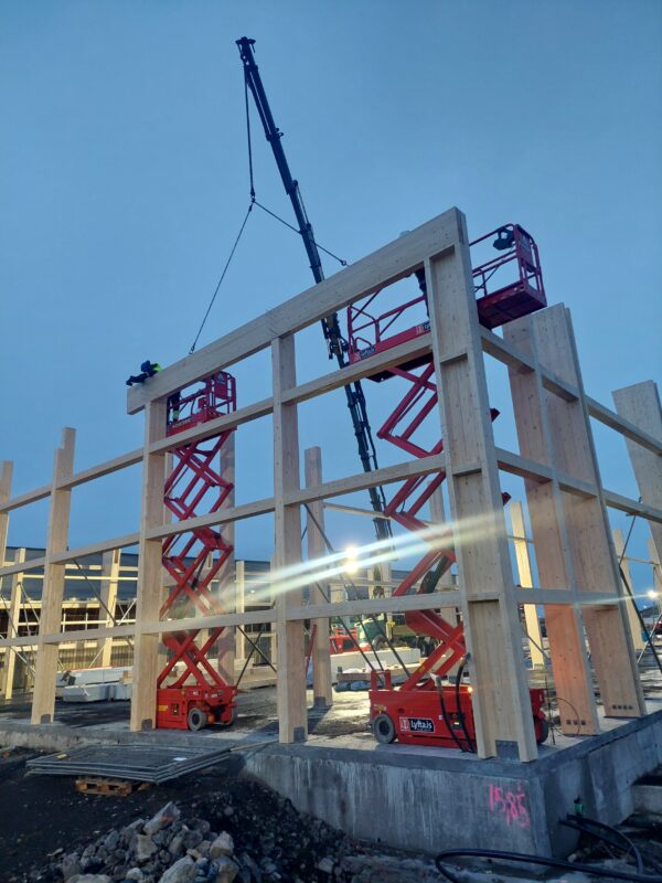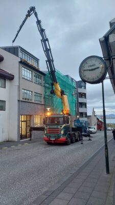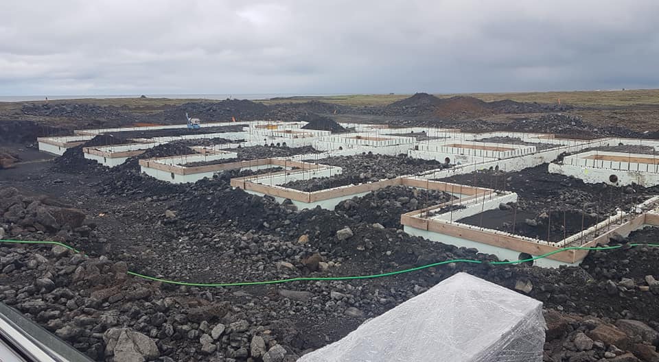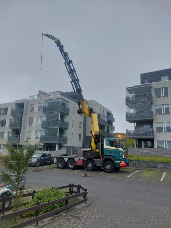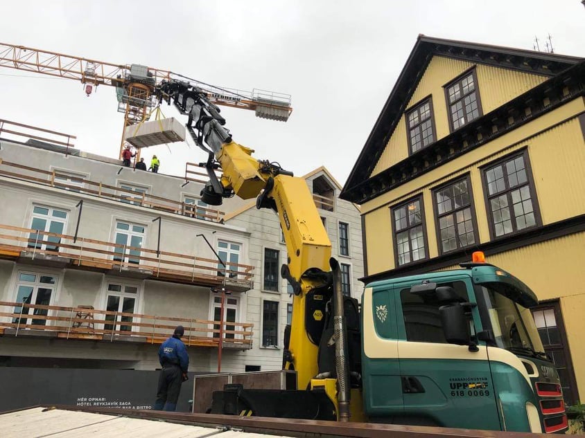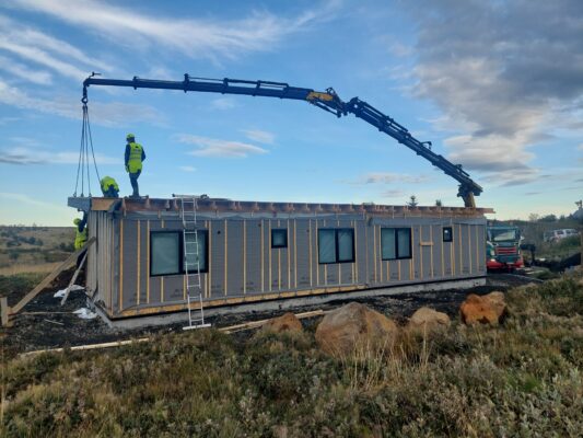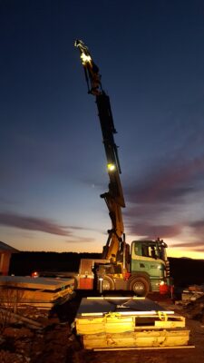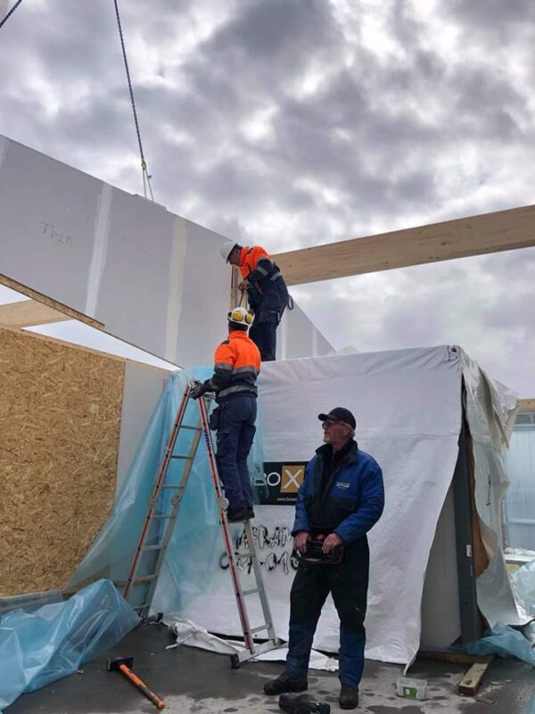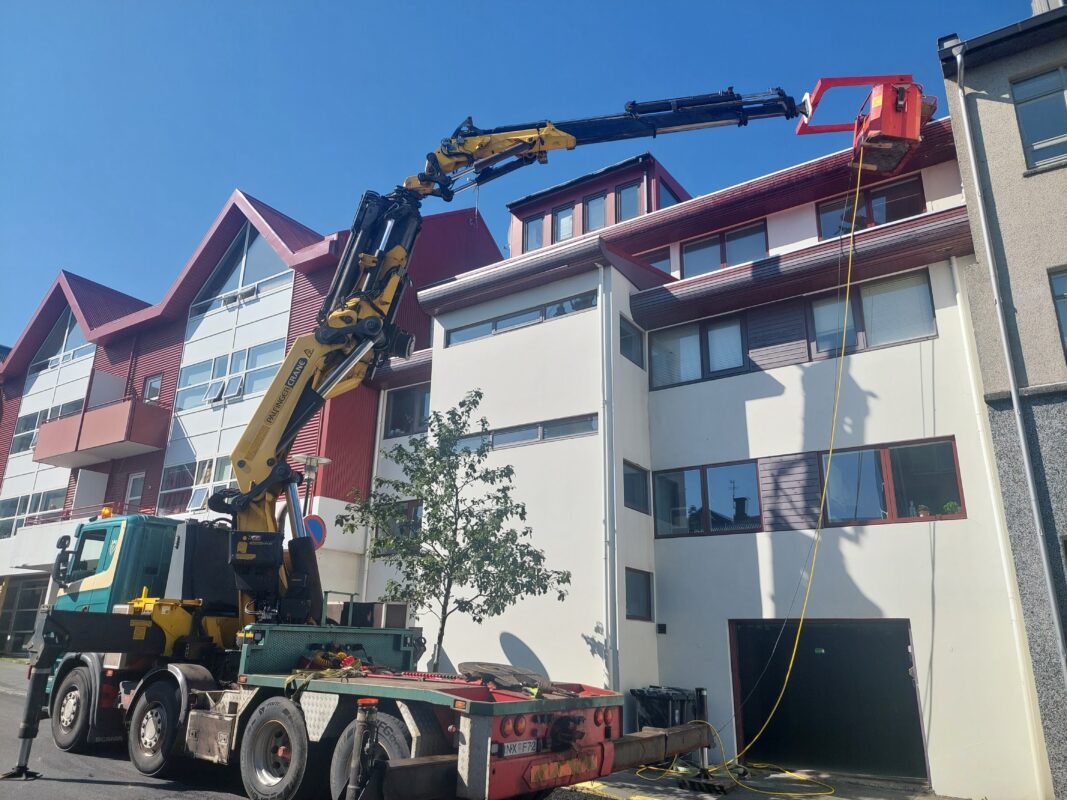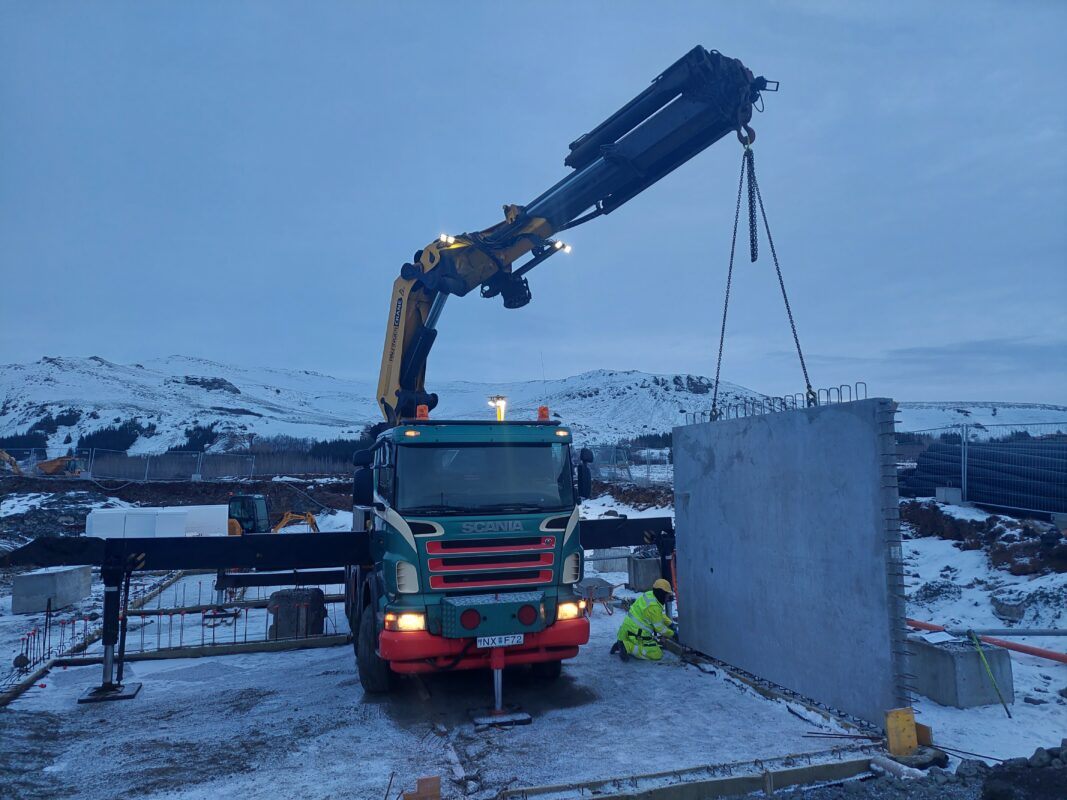 Hérna erum við að setja upp raðhús, sumarhús og límtrésskemmur.
