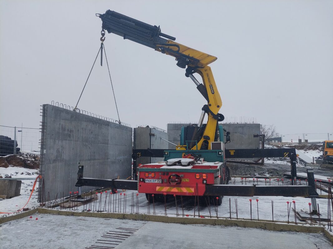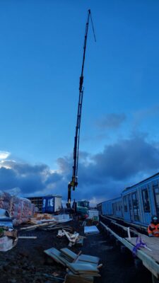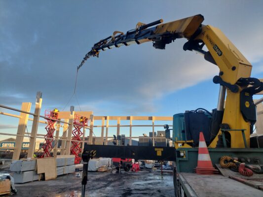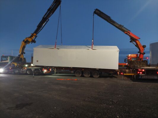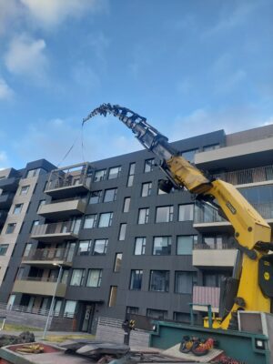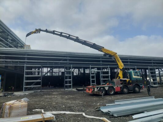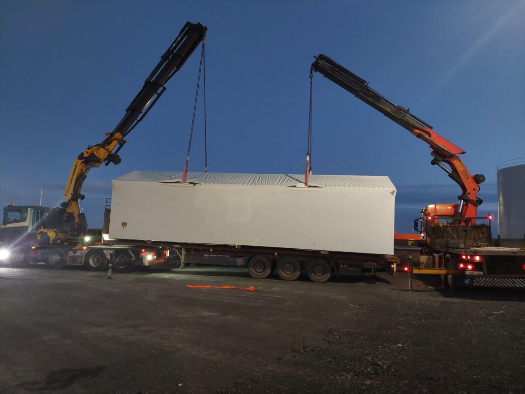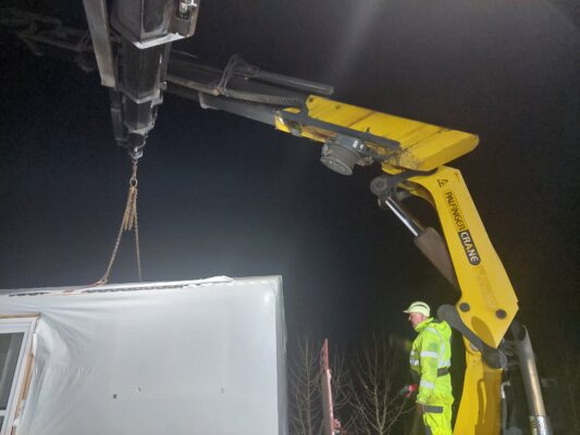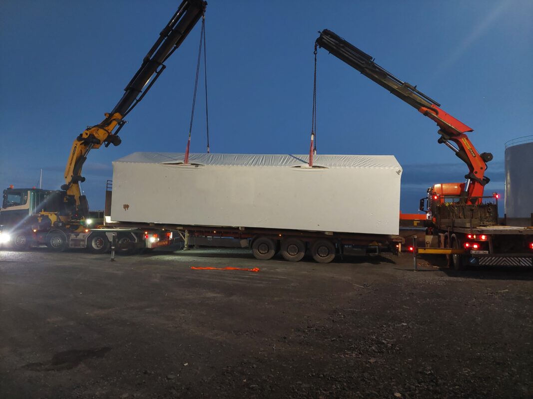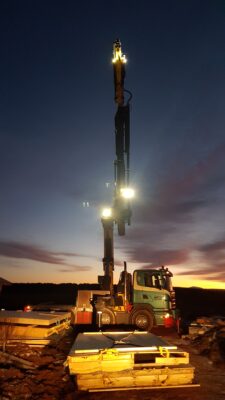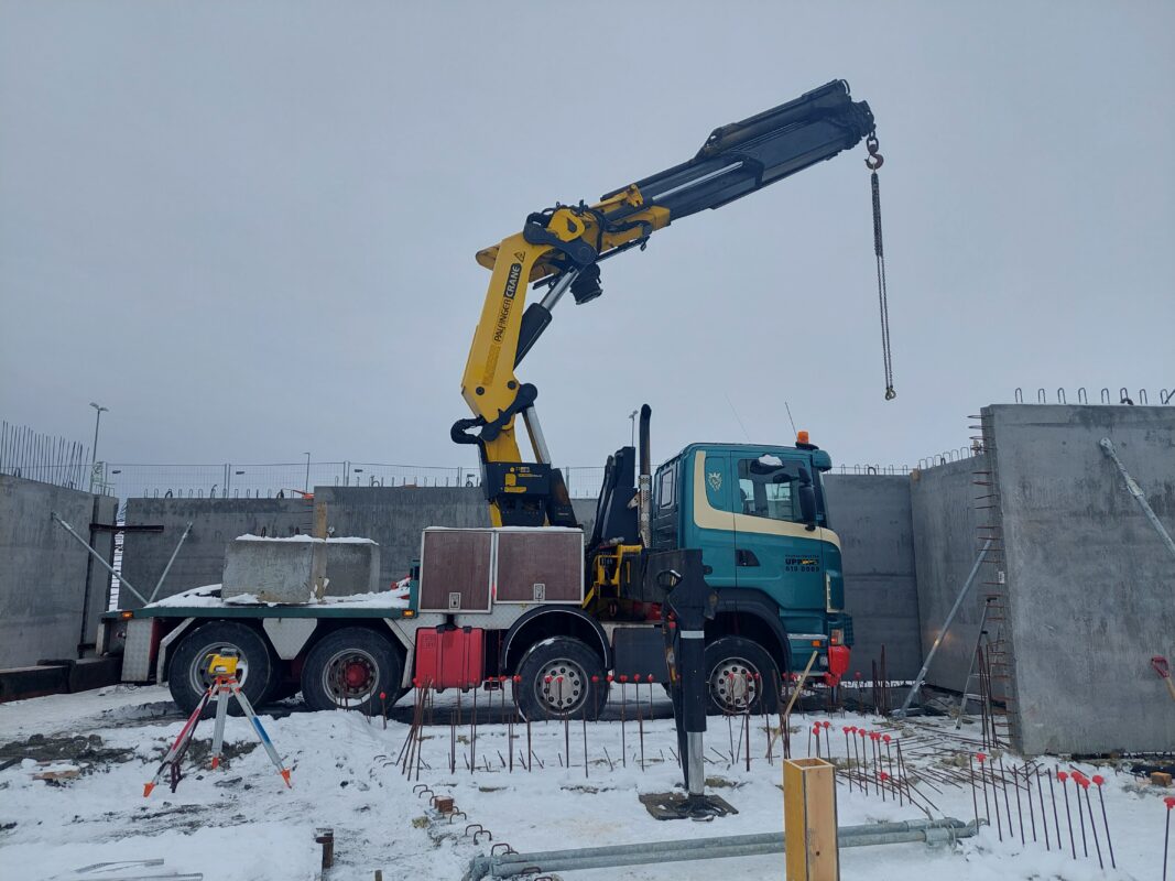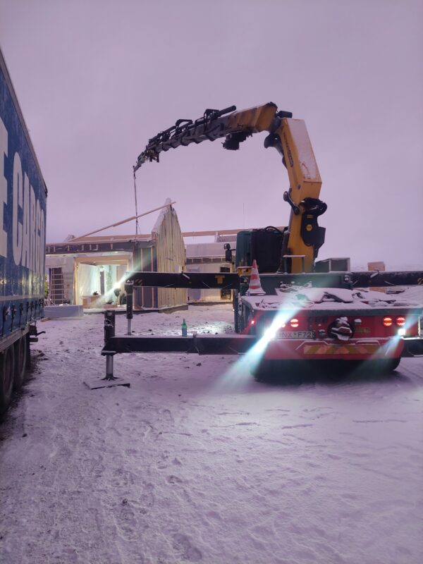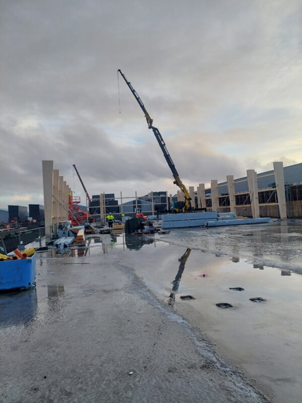 Hérna erum við að setja upp raðhús, sumarhús og límtrésskemmur.
