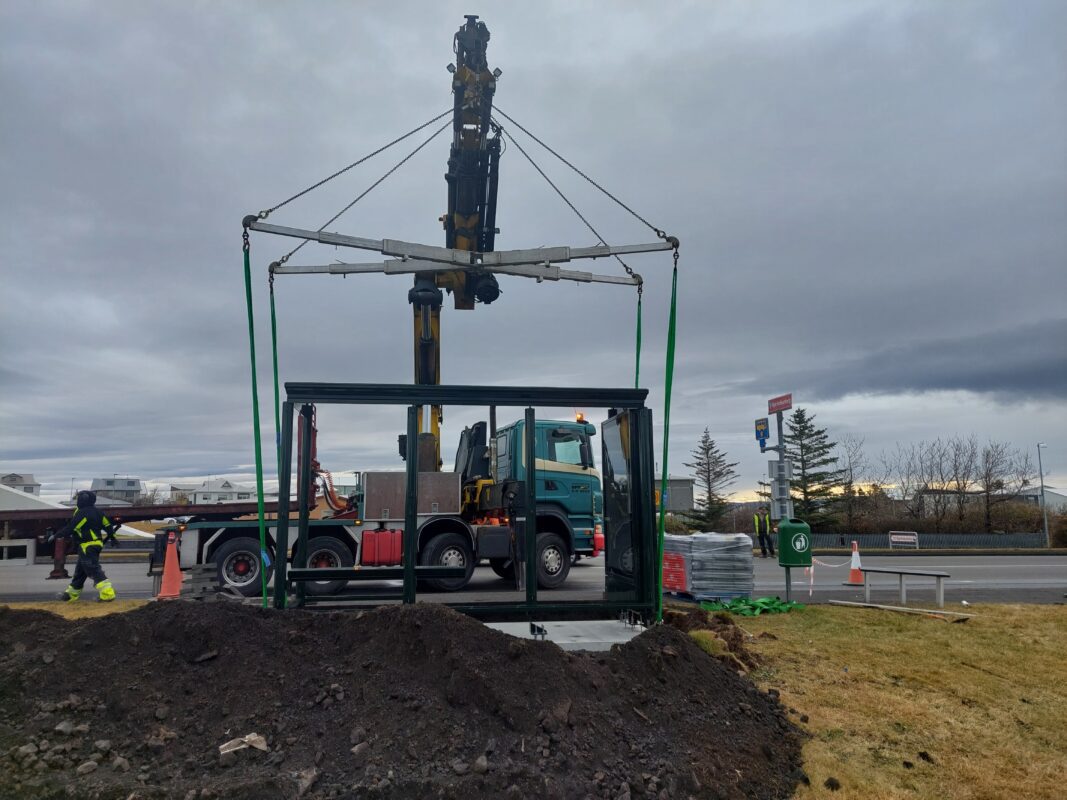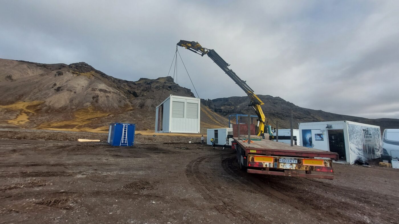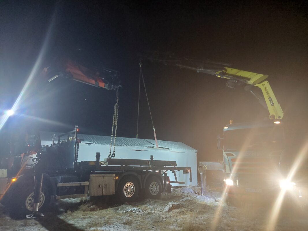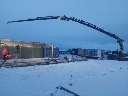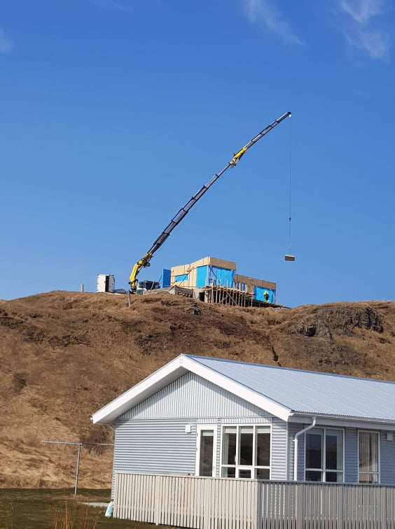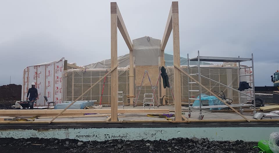 Hérna erum við að setja upp hús í á Torfastöðum í Grafningi